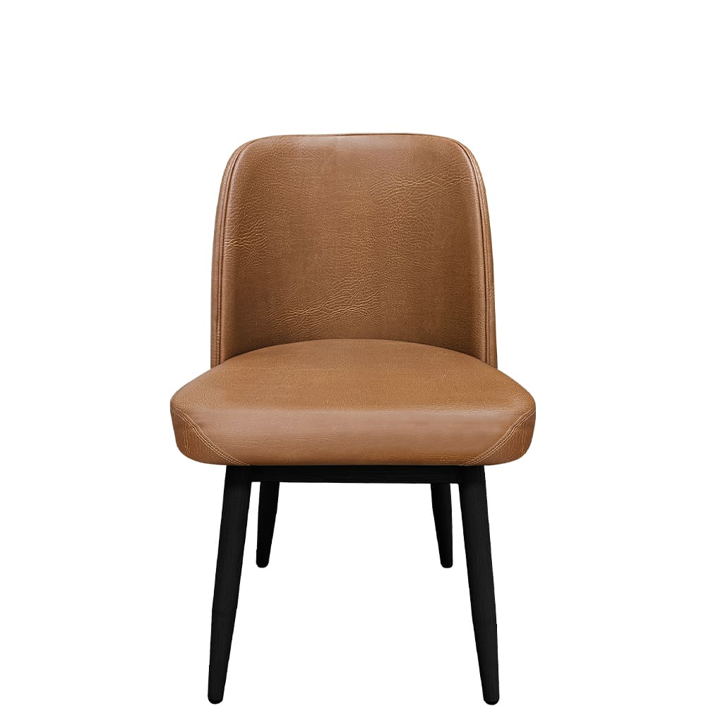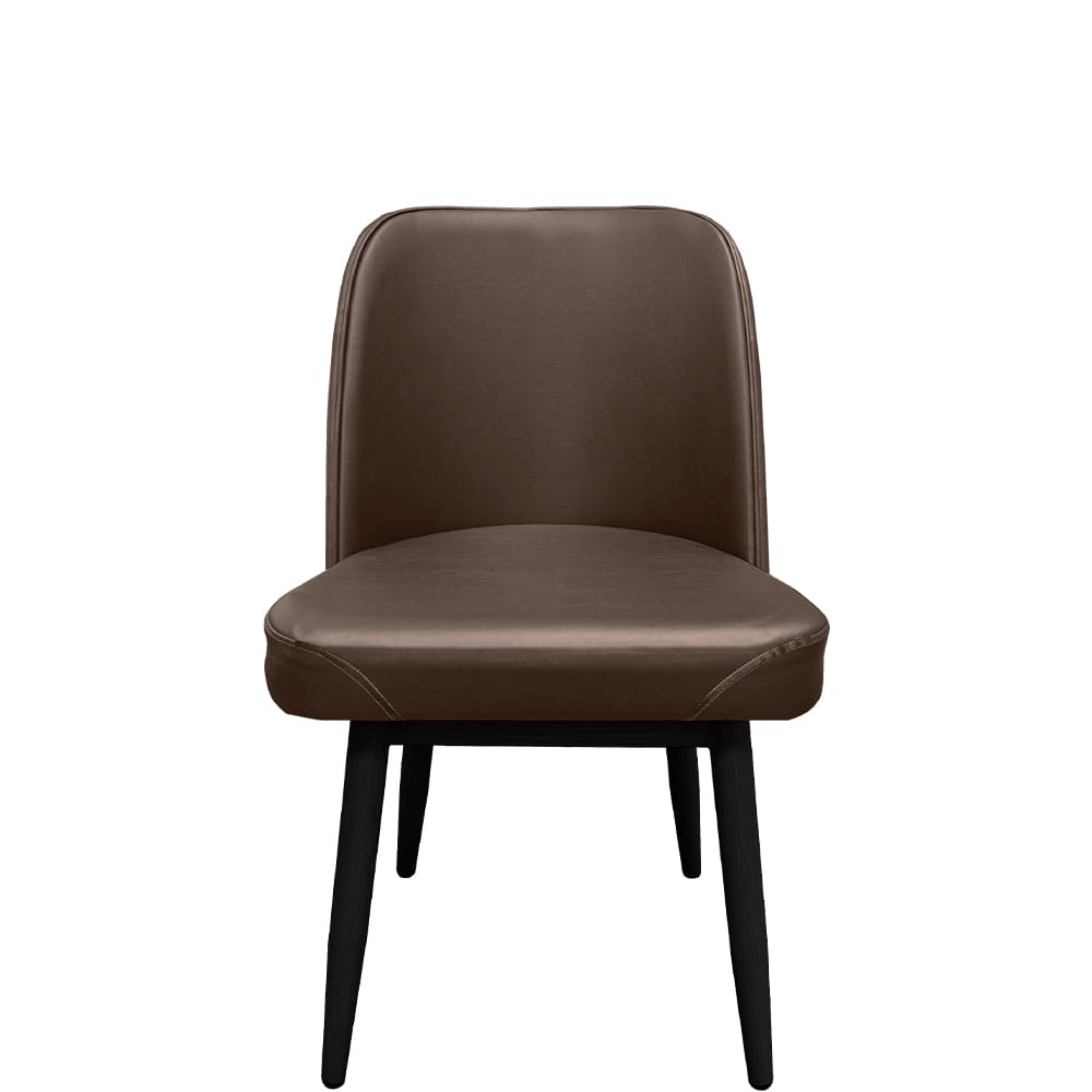 Standard height dining chair with bucket seat design