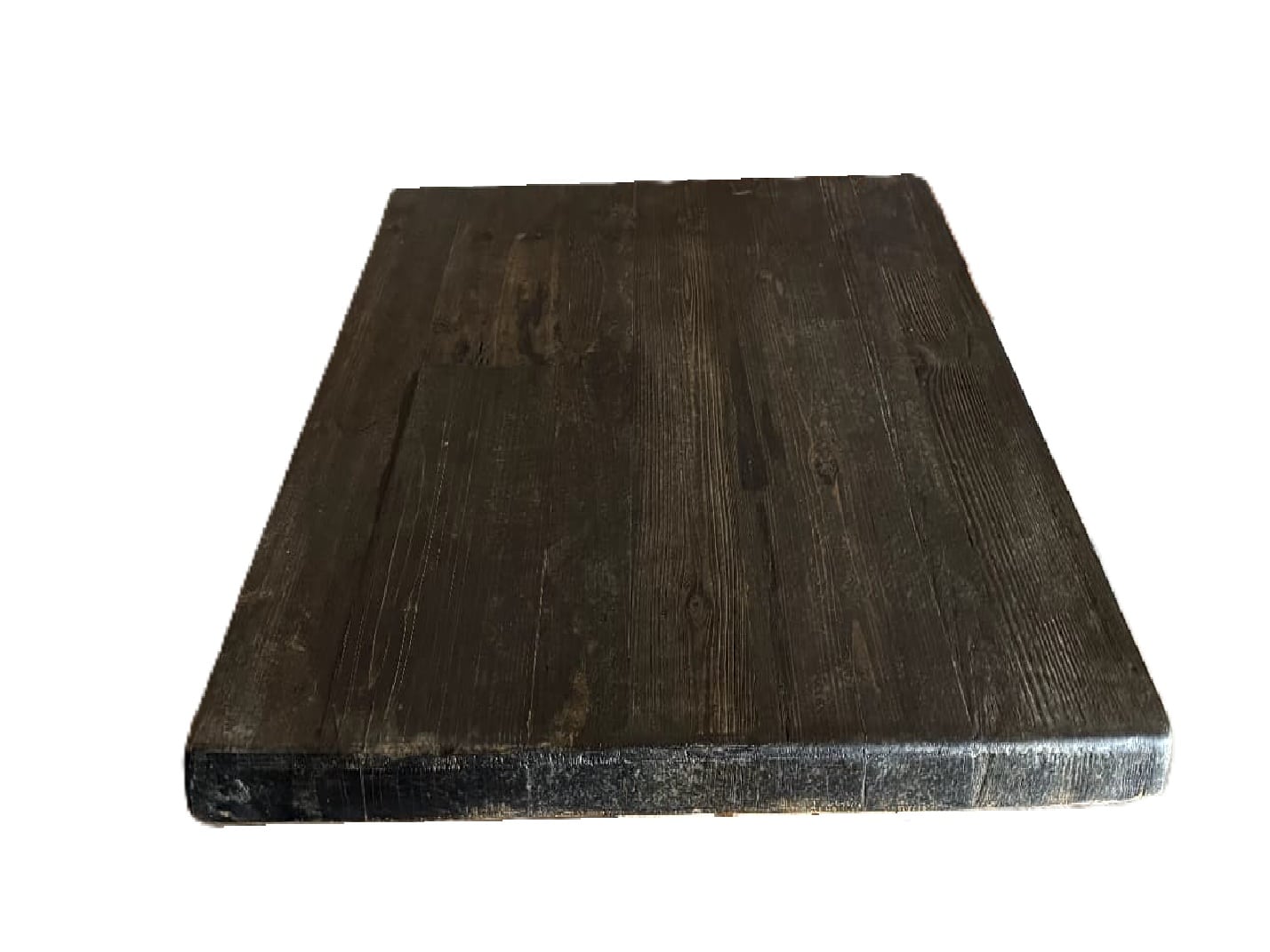 Each Midnight Harvest reclaimed wood table top is approximately 1.5 inches thick and reinforced with a cabinet-grade plywood backing for long-lasting strength and stability. The natural grain variations, subtle imperfections, and weathered textures of the reclaimed wood create a one-of-a-kind surface—no two tops are ever the same. The bold, dark finish makes these tops a standout choice for upscale dining rooms, moody coffee shops, industrial interiors, and modern hospitality designs seeking depth and contrast.